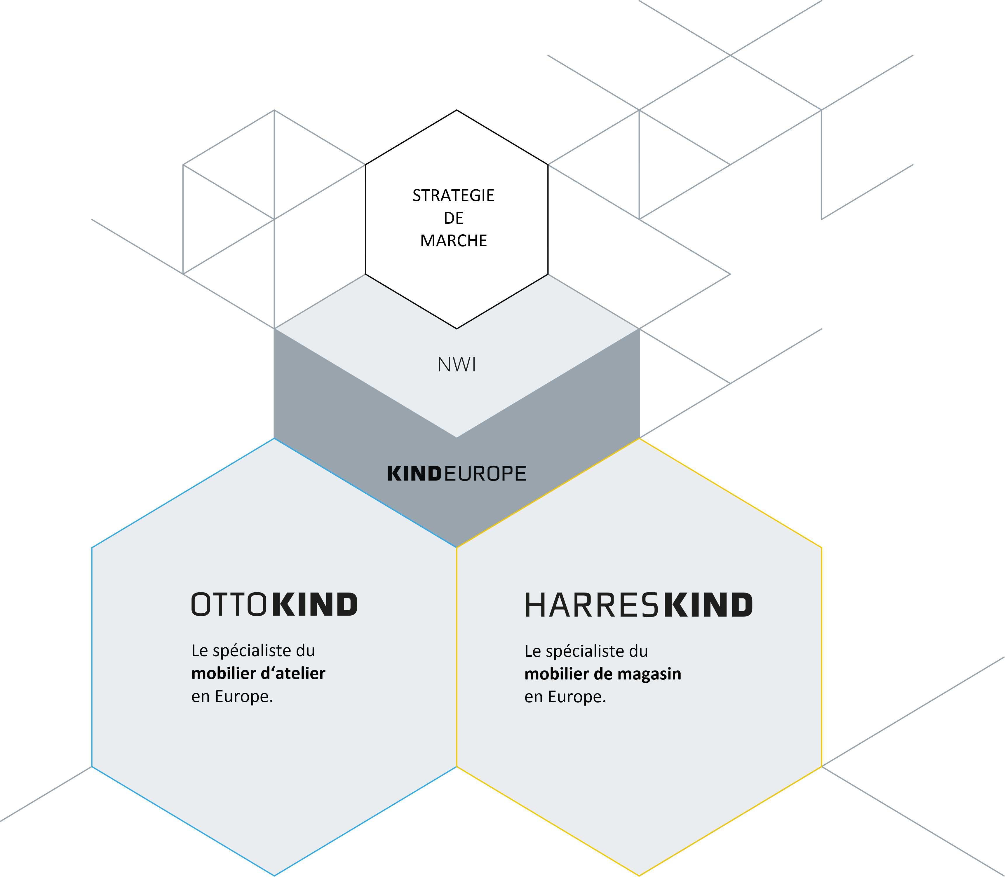 Marque ombrelle d'ameublement professionnel, KIND EUROPE crée une synergie forte entre le mobilier d'usine et l'agencement de magasins. Un groupe de réflexion identifie les dernières tendances en matière d'aménagement, stimule l'innovation, et initie des solutions futures ; l’objectif unique étant la valeur ajoutée et l’avantage client.