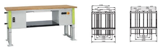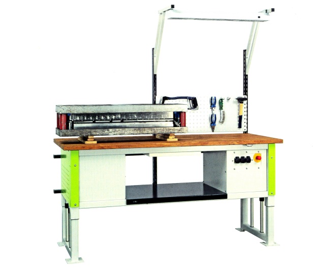 Les tubes rectangulaires horizontaux avec perforations de tous les côtés au pas de 42 mm peuvent accueillir des éléments à accrocher jusqu'à 875 mm au-dessus du plan de travail. Les cadres et les profils portent, au besoin, des éclairages et des rails à 1250 mm au-dessus de la table. Les superstructures de la table se rehaussent en même temps que la plaque de la table.Ce système de poste de travail est l'alternative idéale et à moindre coût permettant de réaliser des postes de travail du plus simple au plus élaboré en fonction de votre utilisation.