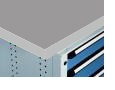 Stratifié avec revêtement électro-zinguée, plateau épaisseur 40 mm avec tôle électro-zinguée, anti-corrosion. Chants en PVC gris de 3 mm d'épaisseur.